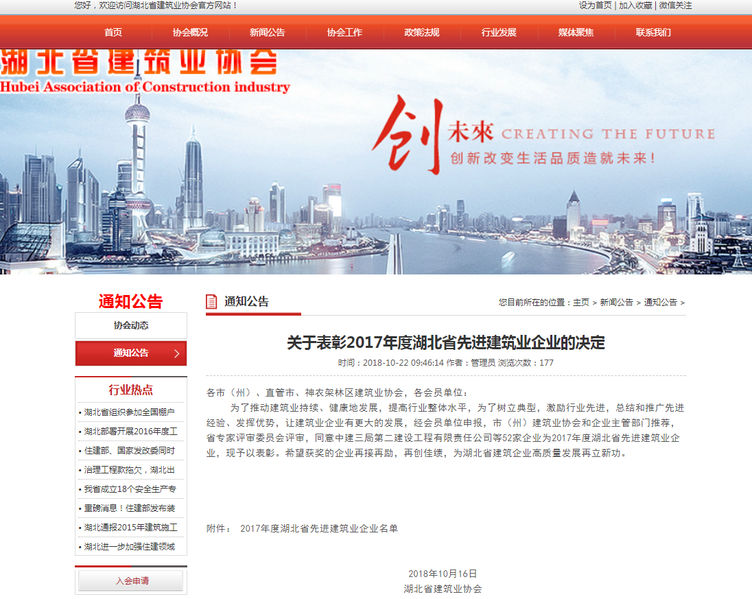 各市(州)、直管市、神農(nóng)架林區(qū)建筑業(yè)協(xié)會(huì),各會(huì)員單位: