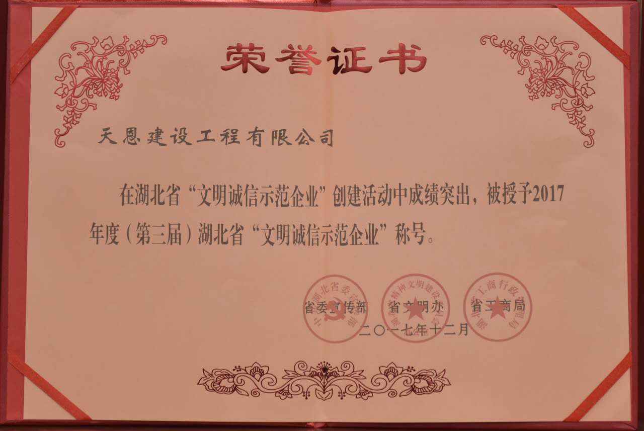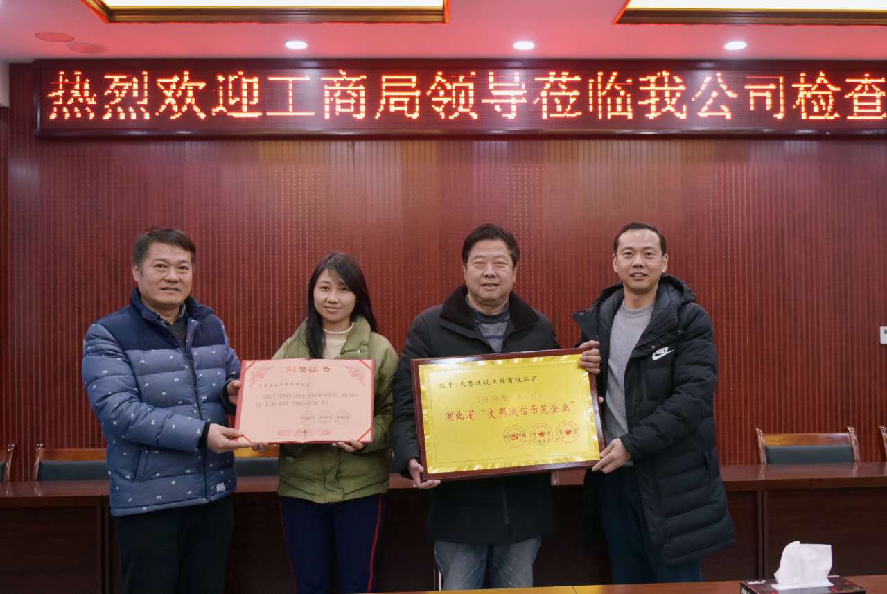 在省委宣傳部、省文明辦和省工商局聯(lián)合開展的湖北省 “文明誠信示范企業(yè)”創(chuàng)建活動(dòng)中,我司榮獲“湖北省文明誠信示范企業(yè)”稱號