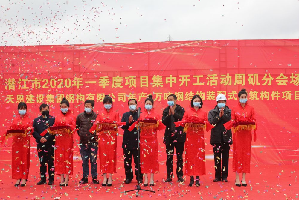 與此同時,天恩集團(tuán)鋼結(jié)構(gòu)裝配式建筑項(xiàng)目在潛江市周磯辦事處分會場開工。該項(xiàng)目占地面63.43畝,總投資1億元。預(yù)計2020年12月建成投產(chǎn),屆時將創(chuàng)造長期性就業(yè)崗位300個,新增工業(yè)產(chǎn)值2億元,為打造潛江綠色建筑產(chǎn)業(yè)園和推動地方經(jīng)濟(jì)社會快速發(fā)展作出積極貢獻(xiàn)。